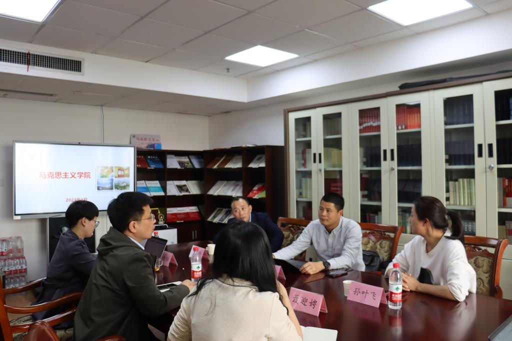 2023年4月12日下午,浙江万里学院马克思主义学院院长万松钱,副院长、直属党支部副书记孙叶飞,副院长梁立新一行到我院考察交流,我院党总支书记、执行院长伍醒、党总支副书记张维雅、副院长聂迎娉等参加交流会。