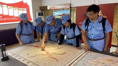 活动开始前,老师们统一着装,在红军广场列队,学院党总支书记伍醒首先向大家强调了开展此次主题党日活动的意义,并带领全体党员面向党徽重温了入党誓词,老师们铿锵有力的宣誓声表达了不忘初心、牢记使命的坚强决心。随着红军的足迹,长征路上的重要场景一一呈现,从瑞金出发、血战湘江、强渡乌江到遵义会议、四渡赤水、巧渡金沙江、强渡大渡河,再到飞夺泸定桥、爬雪山、过草地、大会师等,老师们在每个场景前驻足回忆,缅怀历史,在沉浸式的情景中,重温红军长征这段波澜壮阔的历史。最后,老师们到达东海学堂红色国学教育中心,参观了红军长征时期物品,大家围在红军长征路线图前展开了热烈的讨论交流,进一步加深了对这段历史的理解。