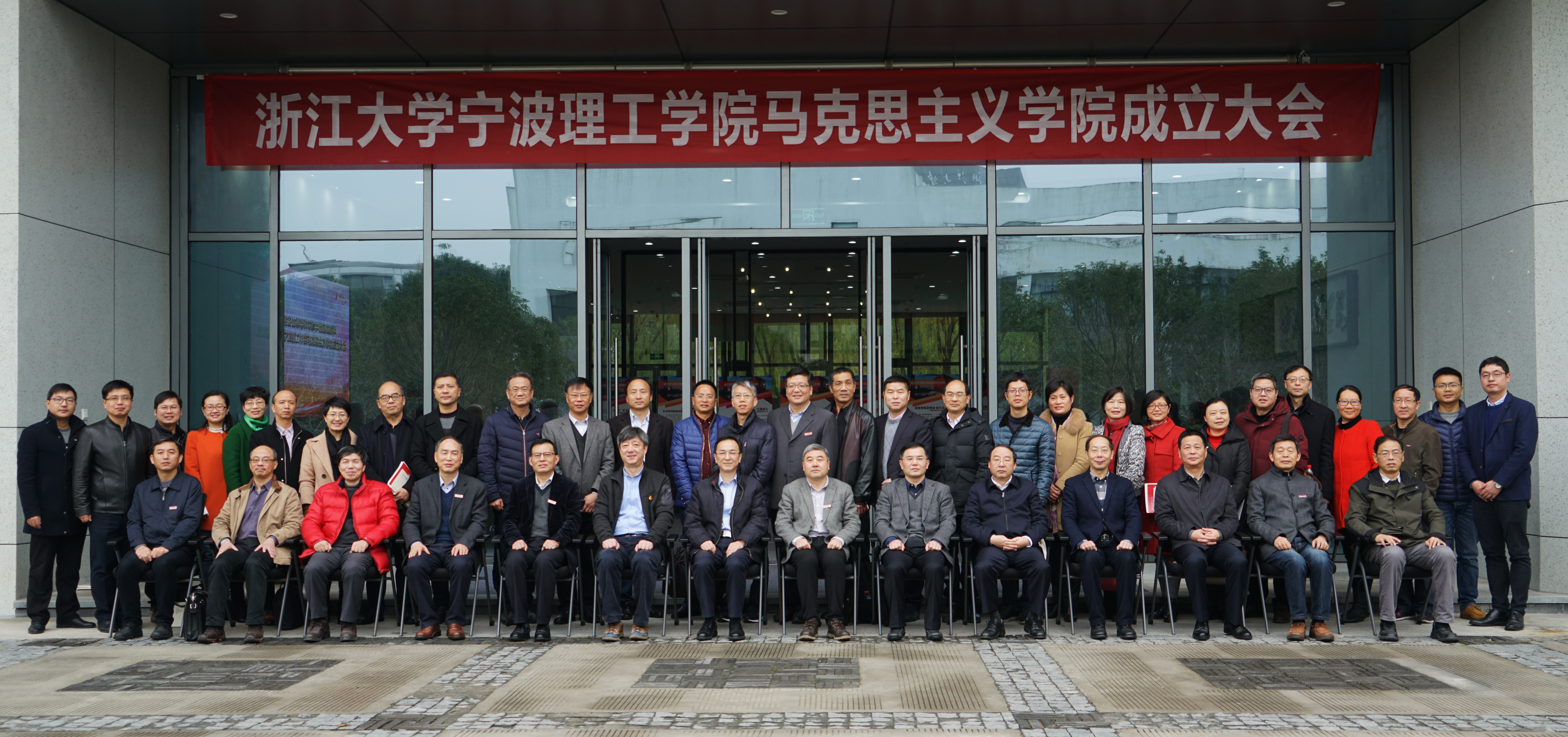 成立大会宣布聘任费英勤同志为马克思主义学院院长,任命伍醒同志为副院长;聘任浙江大学二级教授、求是特聘学者马建青为马克思主义学院教学卓越特聘教授;聘任宁波市社科院(社科联)党组书记、院长(主席)、研究员、博士后陈利权,市委宣传部副部长邓晓东,市委宣传部理论调研处处长、市社科规划办副主任陈印,市委政策研究室(市委改革办)改革协调处处长、中国人民大学公共政策研究院研究员、宁波党建研究中心特聘专家夏行,市委党校二级教授刘彦昌,党校哲学教研部主任、教授、博士、宁波市哲学学会会长任春晓;市委党校社会学部主任、教授、博士孙琼欢,宁波大学学报编辑部主任、教授、浙江省中国特色社会主义理论体系研究中心宁波大学基地主任陈正良八位专家学者为首批兼职教授。院长章献民为获聘专家颁授聘书、佩戴校徽。