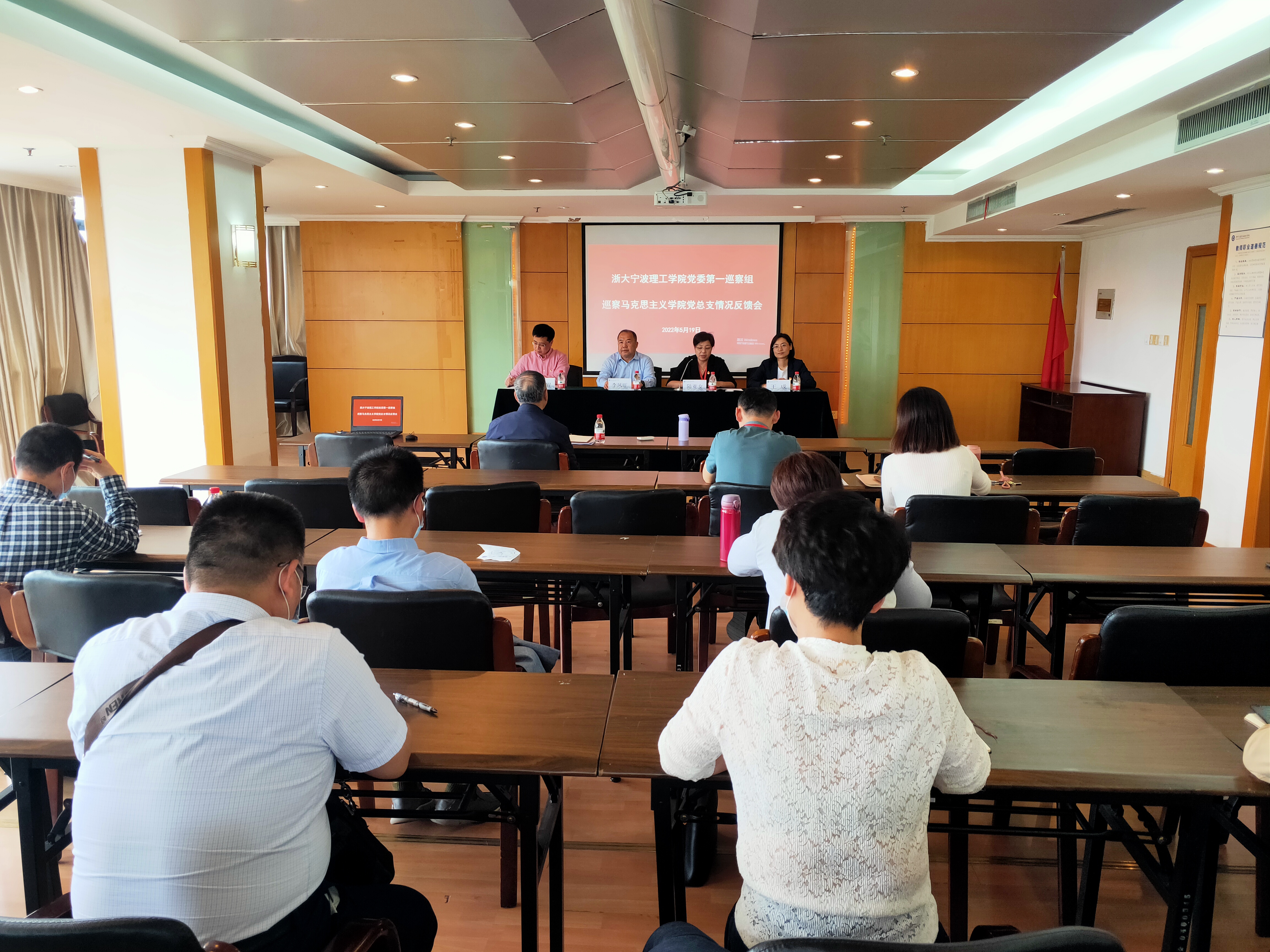 5月19日,学校党委第一巡察组巡察马克思主义学院党总支情况反馈会在行政楼603会议室召开。学校党委副书记、巡察工作领导小组副组长李凤旺,第一巡察组组长陆亚女、副组长王成,巡察办相关人员,马克思主义学院全体教职工参加反馈会。反馈会由马克思主义学院党总支书记伍醒主持。
