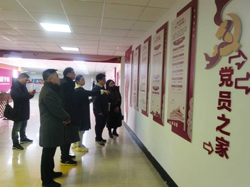 土建学院党委副书记韩晶晶介绍了土建学院党委基本情况和全国党建工作标杆院系培育创建方案,一行人参观了党建工作标杆院系整体文化墙、初心工作室、党员之家和党群活动中心,了解了土建党委在创新教工党支部活动方式、载体方面的典型经验做法,收益良多。