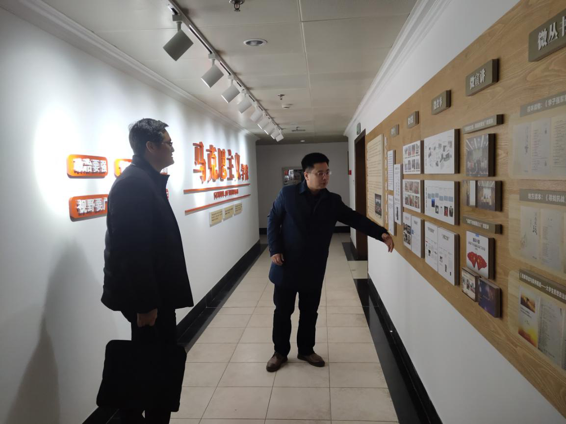 与会人员就基地工作相关问题与谢国光进行了充分的交流。会前,谢国光参观了学院的文化墙,对学院思政理论课“微化”教学改革的理念与成果表示赞许。