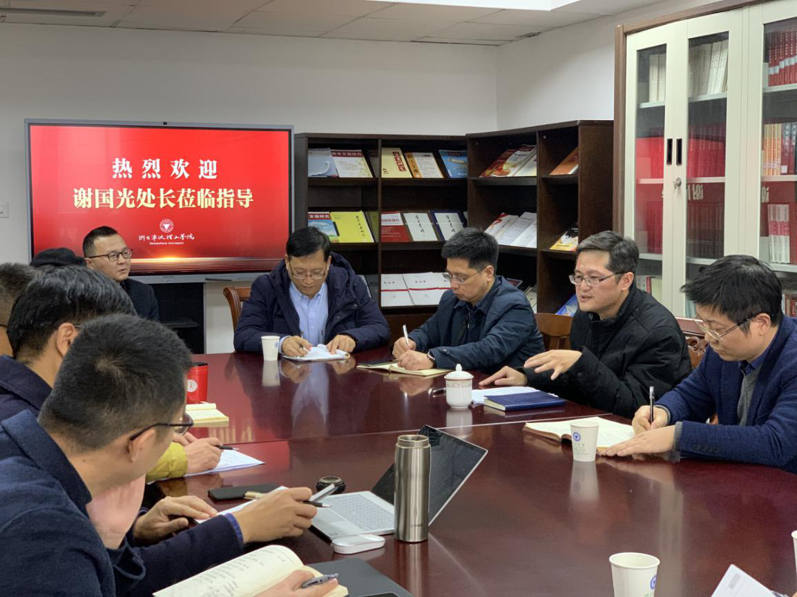 日前,宁波市社科院公布了宁波市第五轮社会科学研究基地名单,马克思主义学院牵头申报的学校德育一体化研究基地入选。12月8日宁波市社科院科研处处长谢国光应邀来学院对社科基地工作进行实地指导,并就基地工作中存在的问题、建设要求、当前工作进行了交流。校科研处副处长马翔、校内各基地负责人以及学校德育一体化研究基地相关人员参加次会议。会议由学校德育一体化研究基地首席专家、马克思主义学院副院长伍醒教授主持。