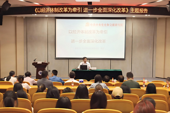 崔友平深入浅出地梳理了我国经济体制改革的历史进程,结合党的二十届三中全会通过的《中共中央关于进一步全面深化改革、推进中国式现代化的决定》,围绕牵住经济体制改革这个“牛鼻子”,全面部署进一步深化经济体制改革;以经济体制改革为牵引,推动全面改革;注重统筹发展和安全;加强党的领导等方面展开了深入论述。