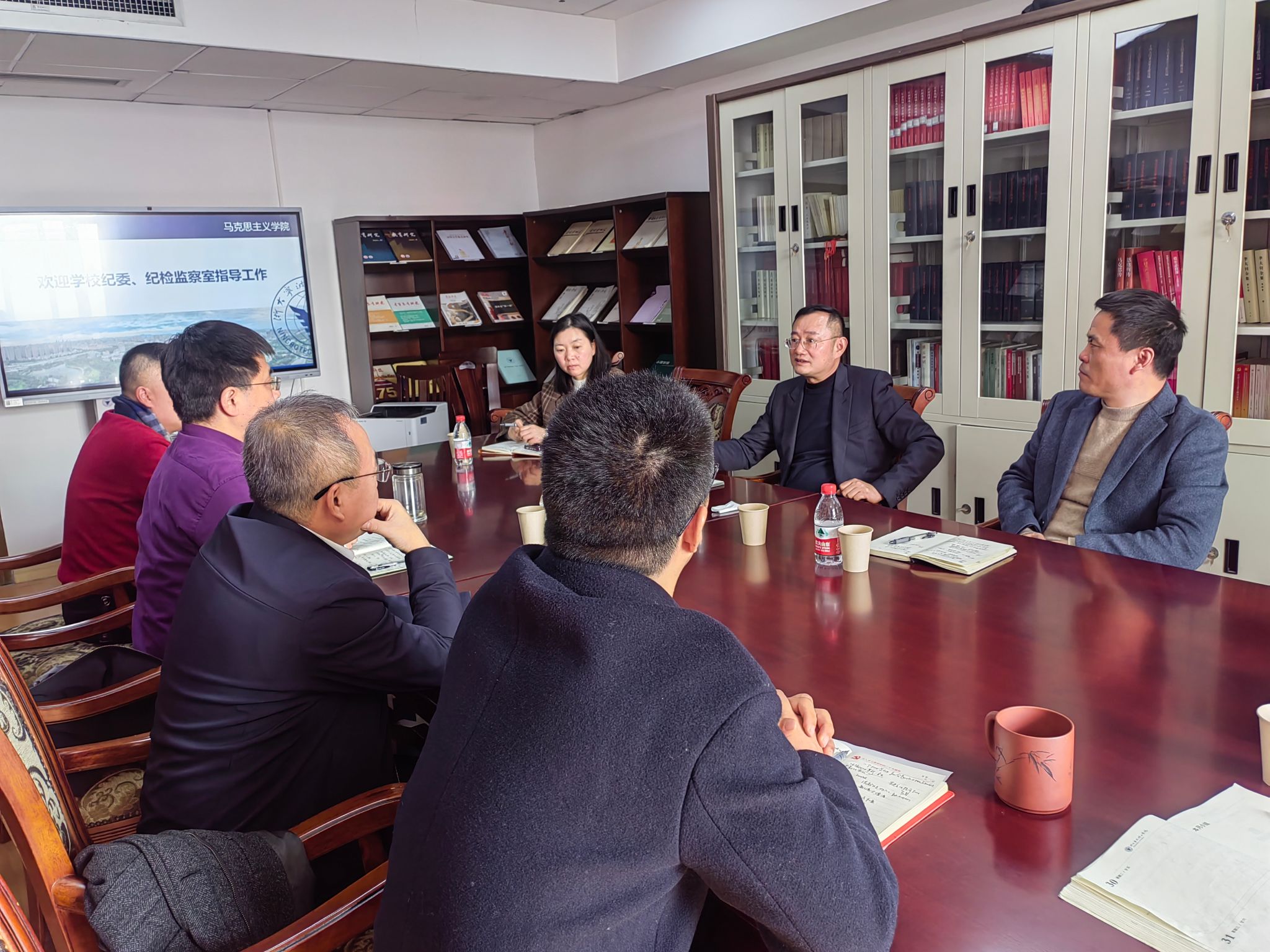 12月31日,学校纪委书记胡文汉带队来院检查指导工作,并开展座谈。学校纪委副书记、纪检监察室主任楼文军,纪检监察室副主任周丽娟和学院领导班子、校中共党史党建研究中心主任丁彬教授参会。