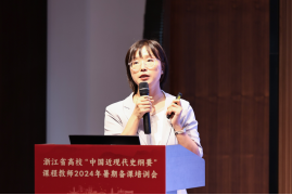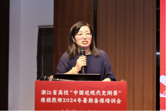 7月17日下午进行的是青年教师教学展示环节,由浙江省高校“纲要”课教学研究会副会长、浙江理工大学王艳娟教授主持。