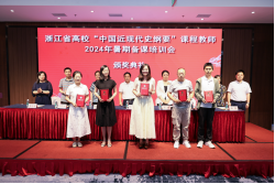 7月18日下午,浙江省高校“中国近现代史纲要”课程教师2024暑期备课培训会圆满结束。本次备课会内容丰富、交流密切,进一步增进了全省各高校“纲要”课教师的沟通联系。通过本次备课会理论和实践学习,参会教师学有所思、学有所悟、学有所得,极大增强了“纲要”课教师教学的积极性、主动性、创造性,极大增强了大家推动“纲要”课教学高质量发展的共识与信心!