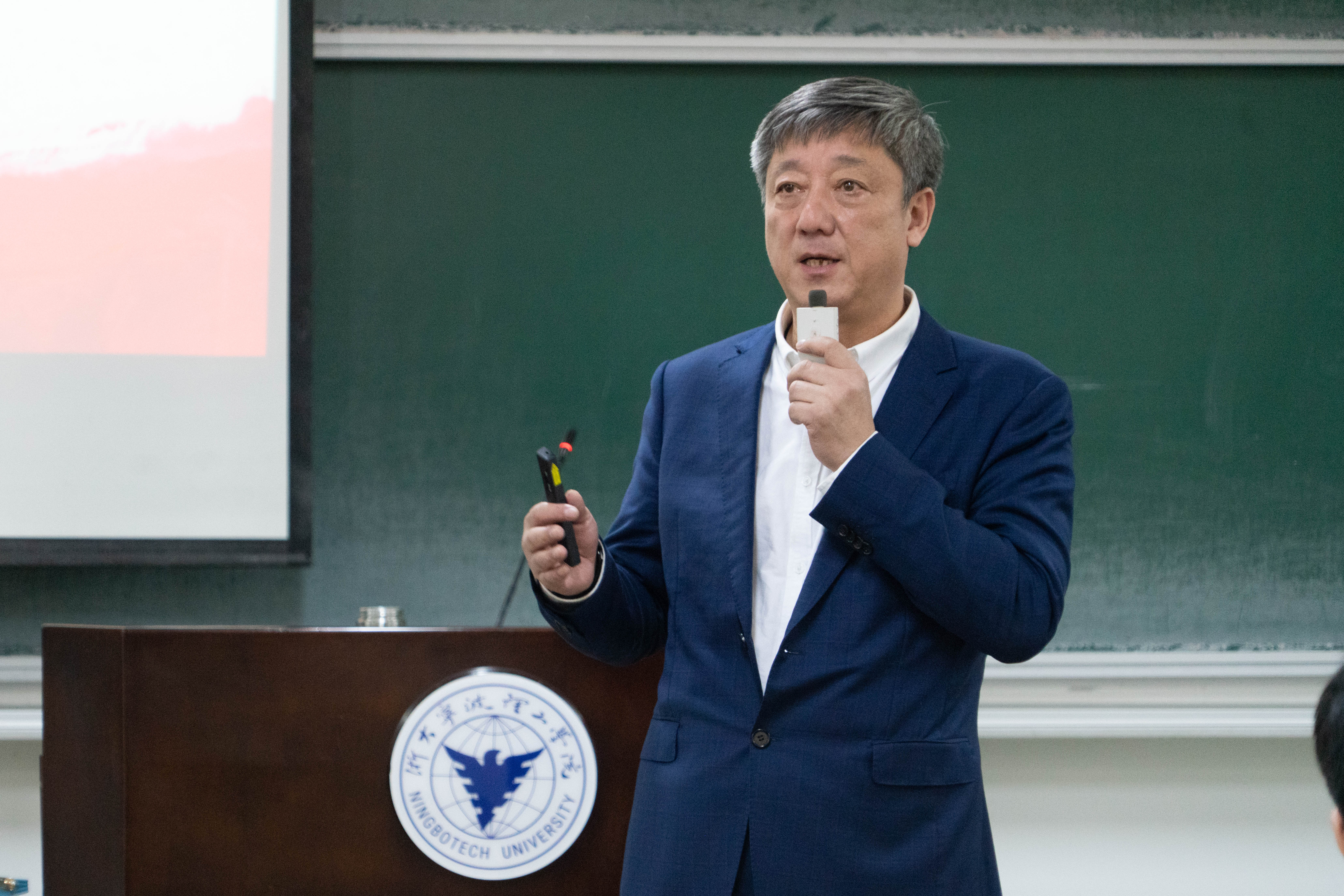 胡征宇从“党的二十大胜利召开的重大意义”“开辟马克思主义中国化时代化新境界”“以中国式现代化全面推进中华民族伟大复兴”、“坚持和加强党的全面领导”等九个方面,带领同学学习领会了党的二十大精神,勉励同学们以党的二十大精神为指引,珍惜光阴,抓好学习,为把人生发展融入中华民族伟大复兴新征程打好坚实基础。他结合办学实际,从习近平总书记在浙江工作期间先后4次来校视察调研指导、关心学校发展的温暖故事讲起,向同学们介绍和回顾了学校的办学历程、专业建设、师资队伍、校园文化与党建成效。课程中,胡征宇风趣睿智的讲解,结合一张张生动鲜活的照片,让同学们深深地体会到学校二十年跨越式发展的光荣与梦想。课上,胡征宇结合《习近平新时代中国特色社会主义思想概论》课程要点,以党的二十大对教育科技人才作出的重大战略部署为统揽,从学校“一流创新性应用型大学”总体目标与新时代青年大学生人才培养相统一的角度,向同学讲述了学校立足宁波、依托浙大、放眼全球的发展思路,以及构建“数字化设计与制造”、“智慧化港口与服务”两大学科群的战略考量。他以学校持续构建“三全育人体系”的工作成效,勉励同学们以学校历届典型毕业生为榜样,“怀抱梦想又脚踏实地,立志做有理想、敢担当、能吃苦、肯奋斗的新时代好青年。”