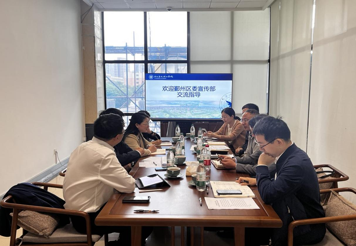 10月22日上午,鄞州区委宣传部常务副部长应林辉一行来校调研,并就如何共建新时代文明实践中心进行了座谈。校党委委员、宣传部部长江美芬,马克思主义学院党委书记、执行院长伍醒,校团委书记聂迎娉,校图书馆馆长舒振宇接待了应林辉一行。