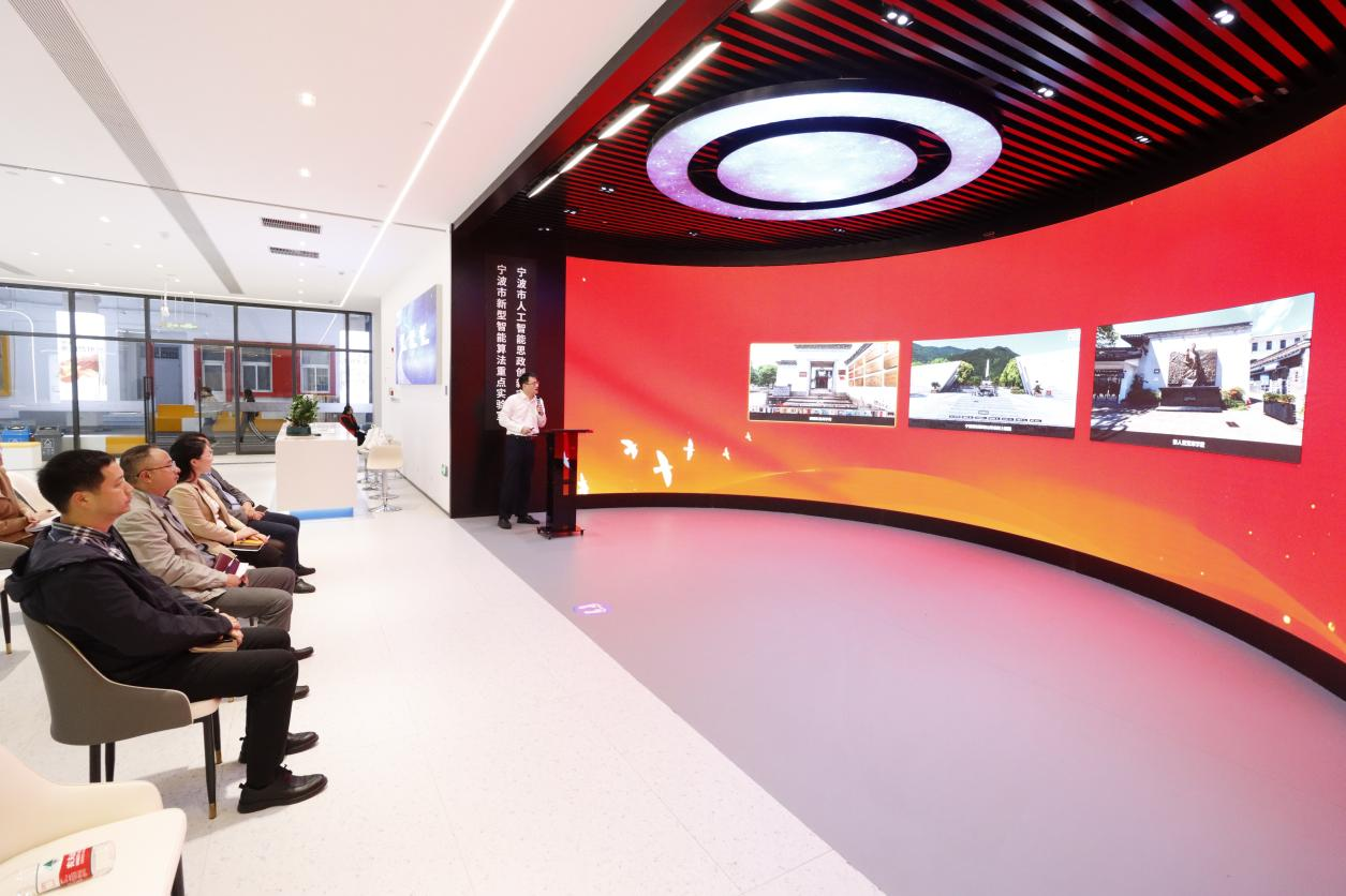 调研期间,与会人员还参观了学校循迹溯源足迹点,听取了宁波市人工智能赋能思政创新实验室关于“宁理红”智能思政教育系统的成果汇报。