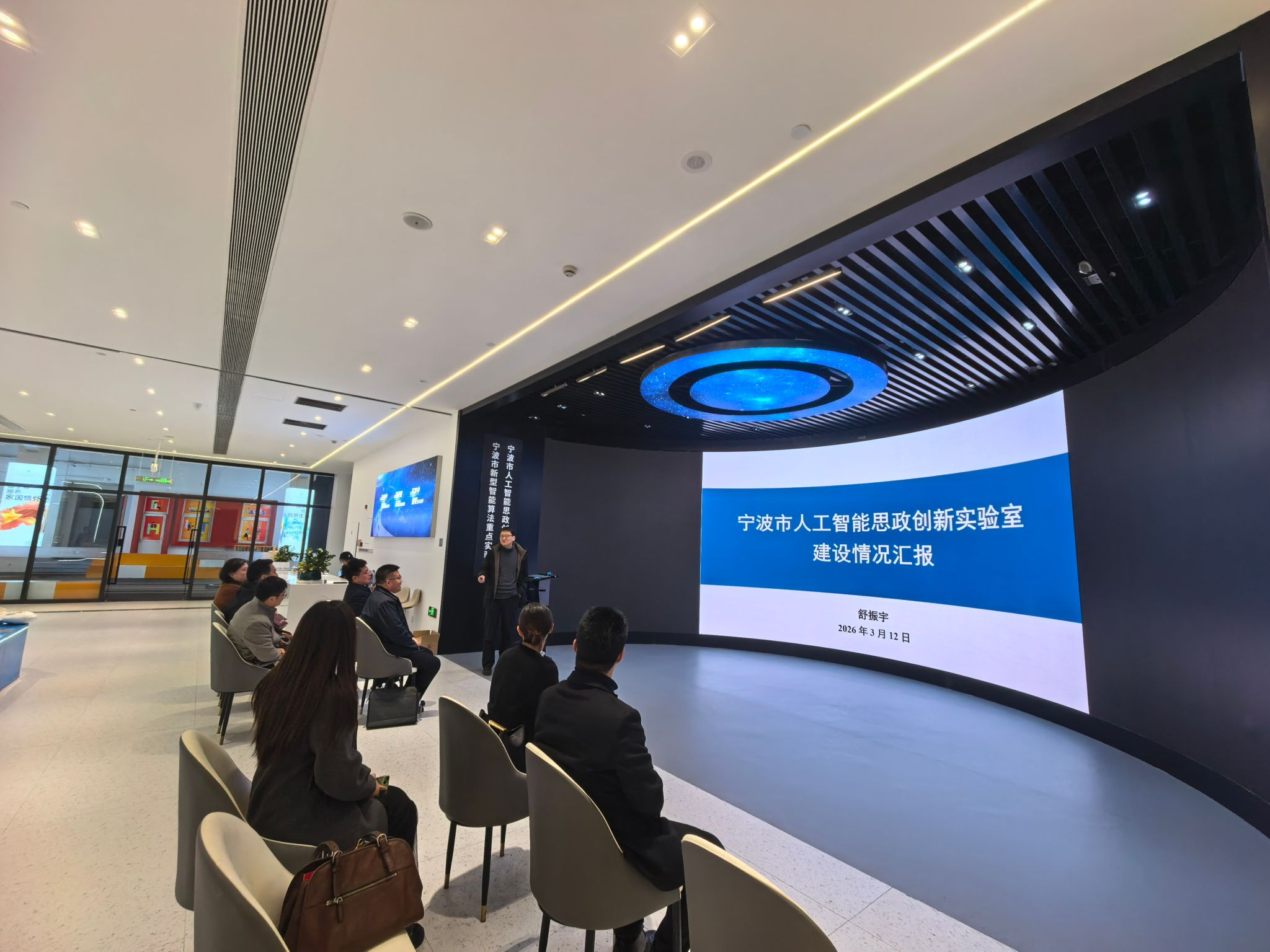 与会人员还参观了学校循迹溯源足迹点,听取了人工智能思政创新实验室关于“宁理红”智能思政教育系统的介绍。双方围绕人工智能赋能思政教学中的应用场景、数据安全及伦理规范等话题进行了探讨。