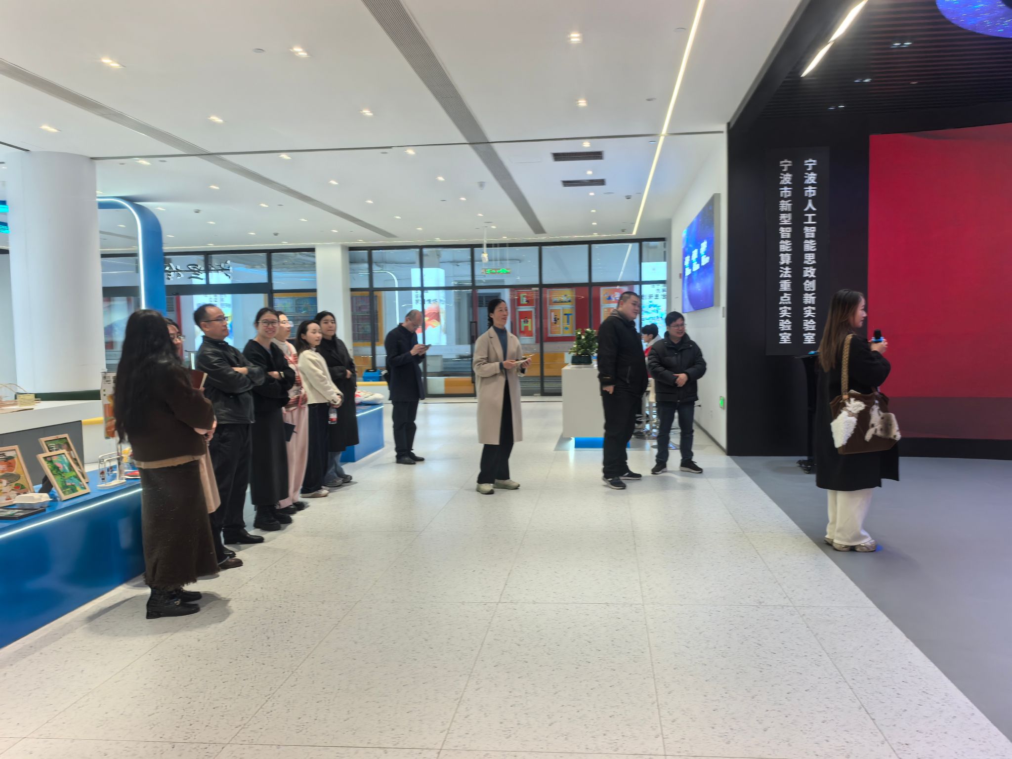 会后,卢培苗一行参观了我院的宁波市人工智能思政创新实验室,体验了虚拟现实、沉浸式教学等现代化教学技术在思政课堂的融合应用,他们对实验室的建设理念、技术配置及教学成效给予了高度评价。